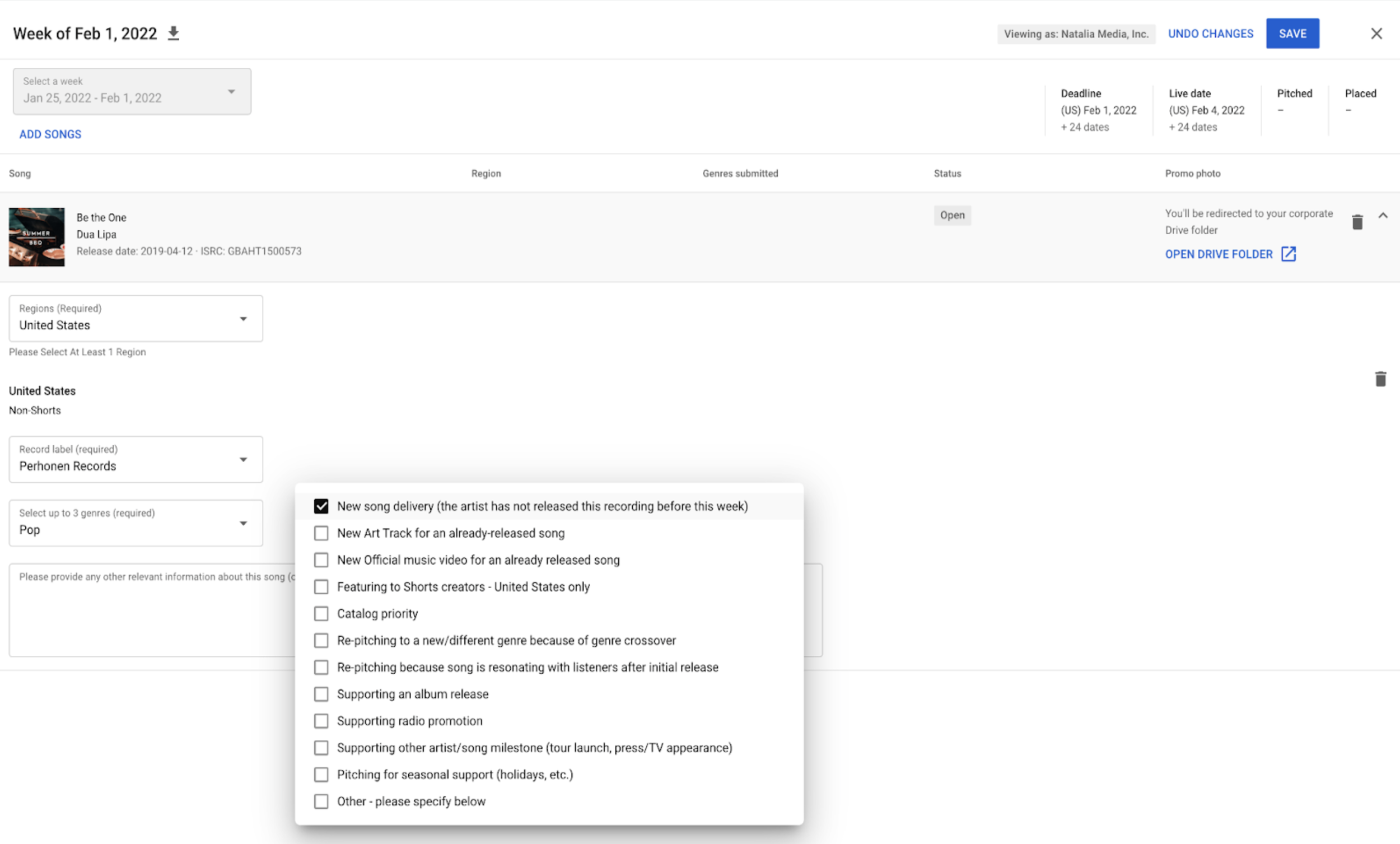 The legacy pitch tool was a very manual process that labels and content owners had to manually submit music sheet documents via a Google drive folder in order to be considered for placement on playlists by YouTube’s Music Programming team.
