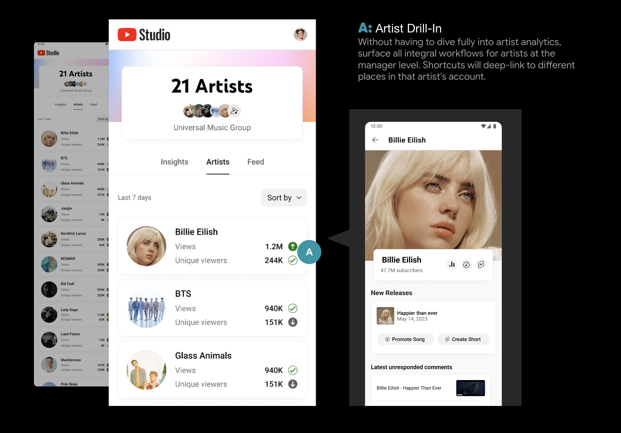 Artist Roster UX creates an extensible framework that scales well for Artist managers and in the future, multi-channel Creator management use-cases.