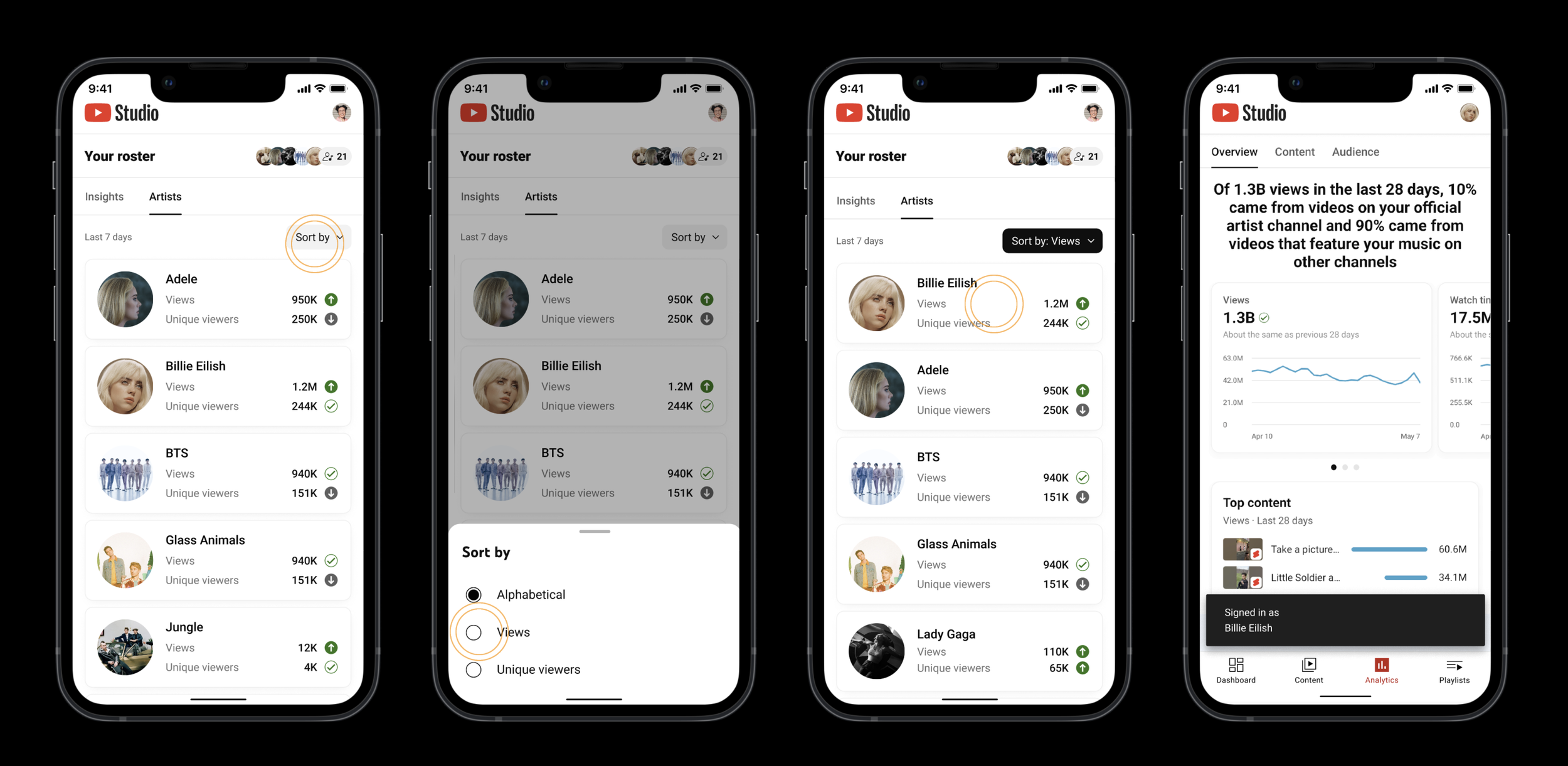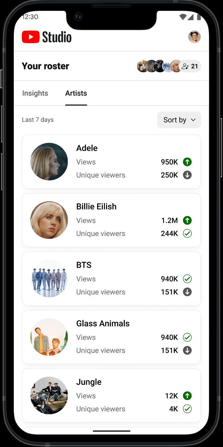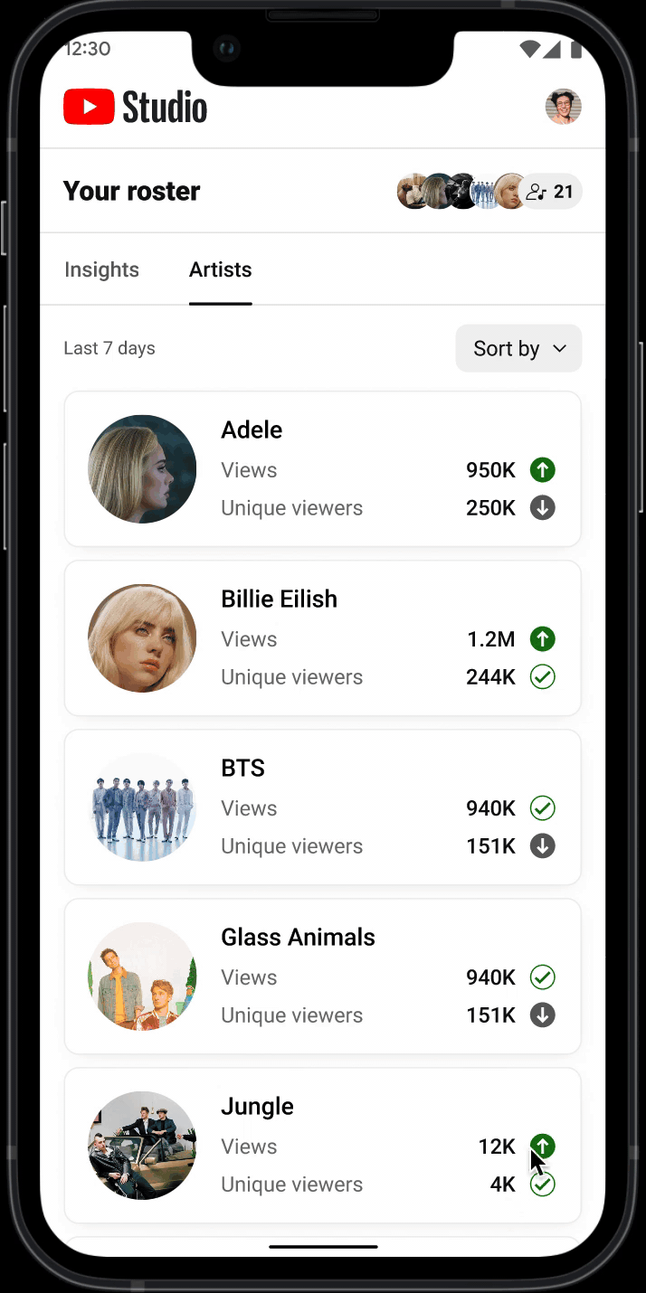 See insights across artists